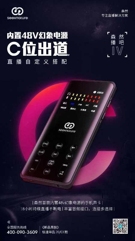 森然 Seeknature 播吧三代声卡价格 参数 播吧三代手机直播声卡k歌喊麦电音手机 电脑同时直播 音平商城